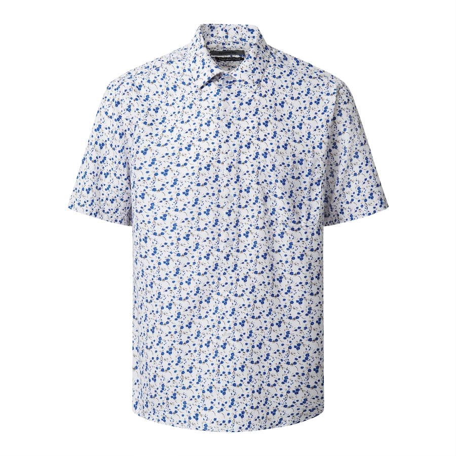 A classic cut casual short-sleeve summer shirt with chest pocket in a dark blue micro floral print making this shirt perfect for your leisurewear wardrobe.