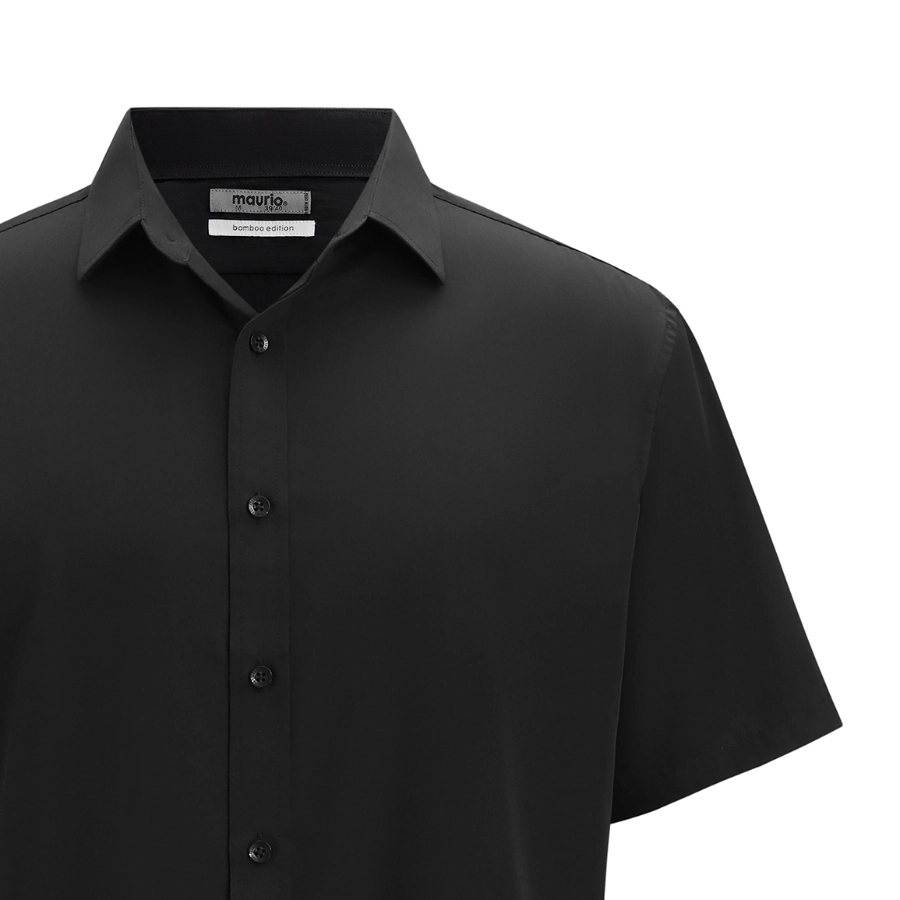 Stylish bamboo mix fabric short-sleeve dress shirt in black.