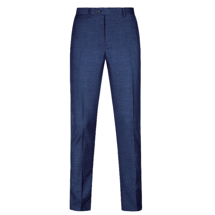 Flat-front men’s suit trousers in a durable polyester/rayon blend. Designed with a clean, modern line and side pockets, they pair perfectly with the matching Maurio suit jacket or can be worn on their own for smart office wear. The easy-care fabric helps resist creases and is comfortable enough for long days on your feet. This version comes in timeless blue to work seamlessly with your existing jackets and shirts.